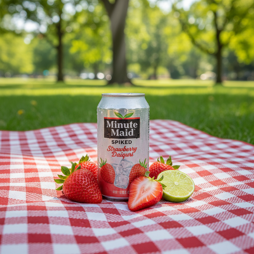 - For Minute Maid Spiked Strawberry Daiquiri: Garnish with a fresh strawberry on the rim of the glass or a lime wedge.