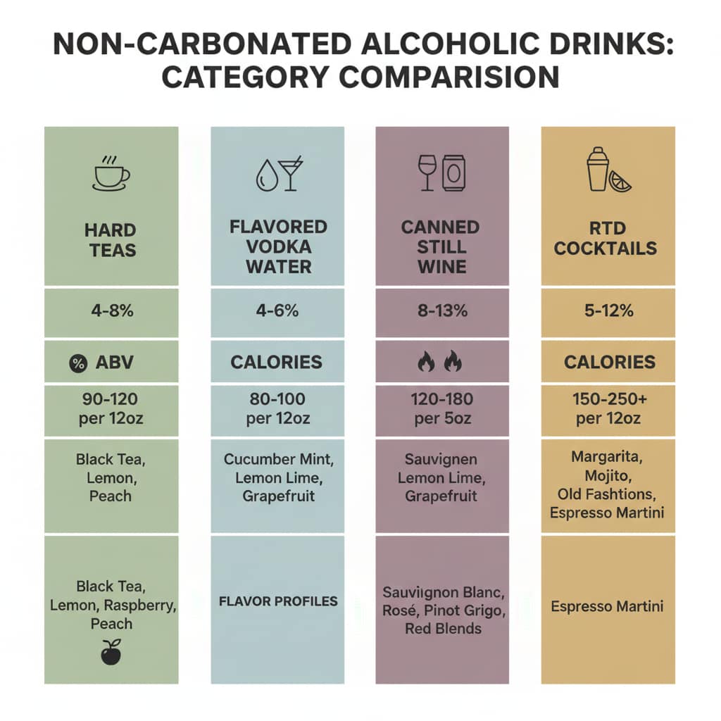 The world of non carbonated alcoholic drinks in cans is exploding with options. It’s more than just “seltzer without the bubbles.” Here are the main categories you’ll find.